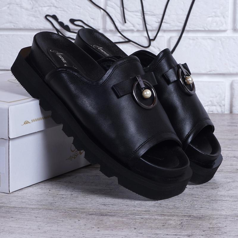 Шльопанці жіночі шкіряні на платформі ТМ Anna Lucci в чорному кольорі. Виробництво – Туреччина. Матеріал – натуральна теляча шкіра всередині та ззовні. Шльопанці на легкій, стійкій платформі, дуже зручна колодка, на кожен день – ідеальний варіант.