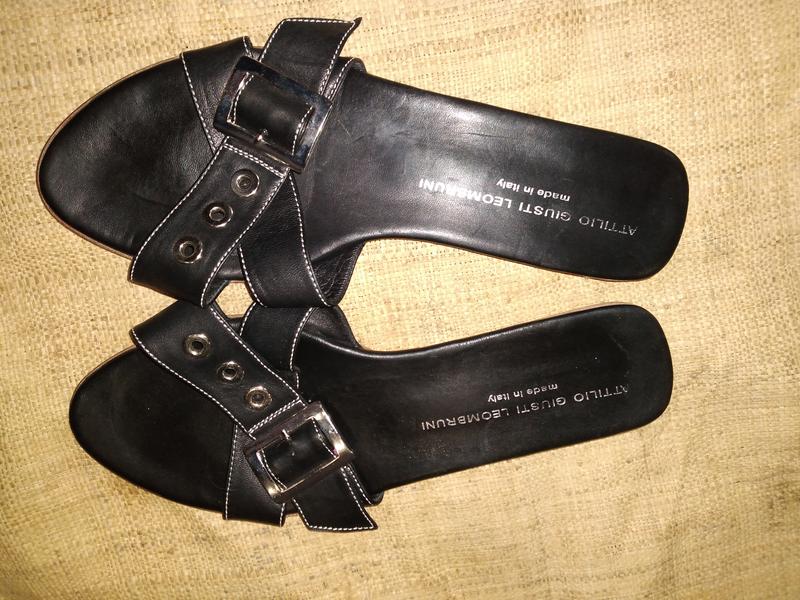 Женские черные кожаные шлепанцы