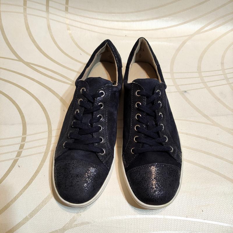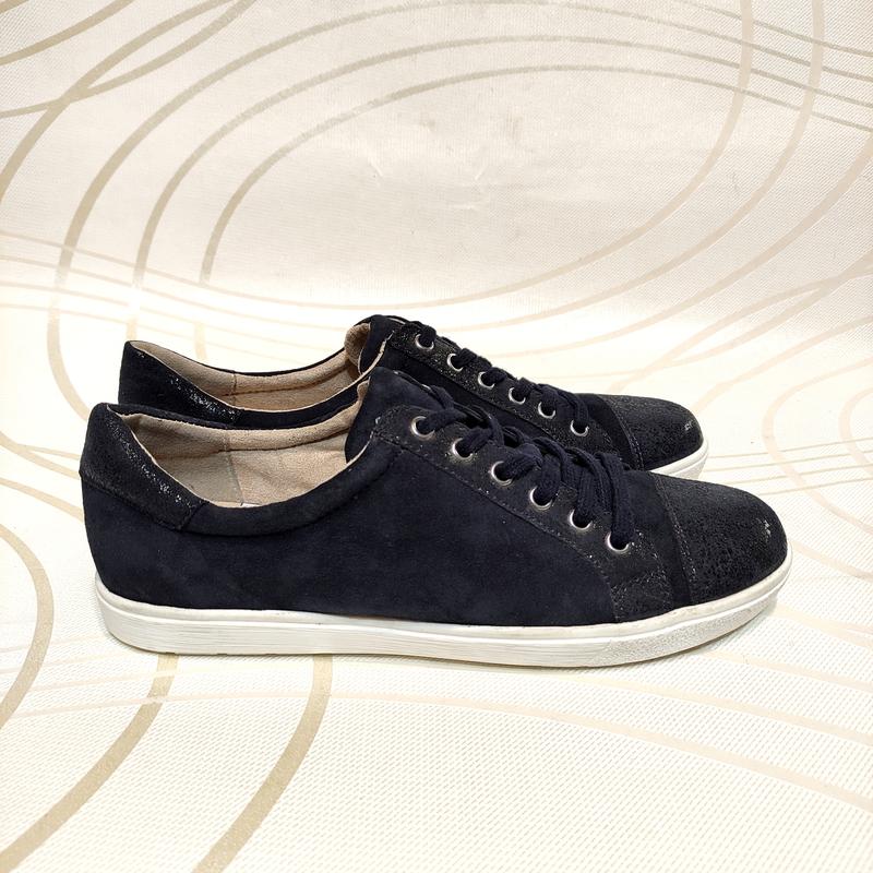 Новые спортивные туфли, сникерсы из натурального,мягкого велюра. Подкладка и стелька из натуральной кожи. Стелька не съёмная. Цвет тёмно-синий. Размер 39. Длина стельки 25см. Есть безопасная оплата. Отвечу на все интересующие вас вопросы.