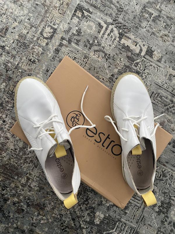 Оригинальные кожаные туфли на весну-лето белого цвета, очень удобные и легкие фирмы estro.37 размер23,5 см по потолке