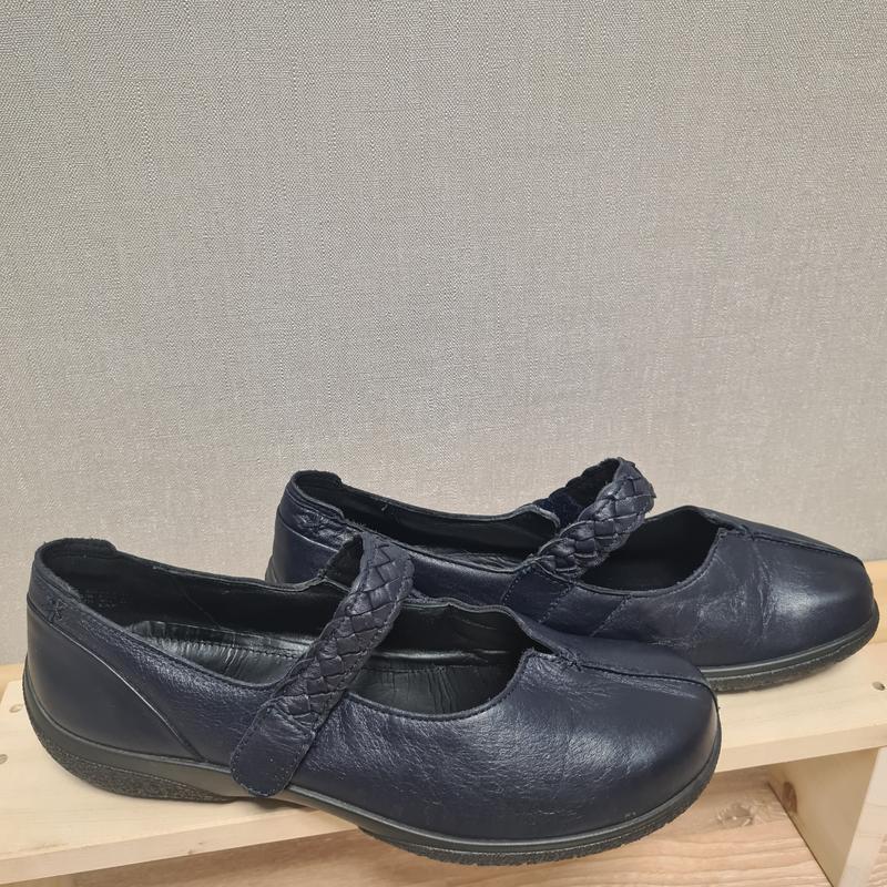 Очень комфортные туфли от Hotter Застёжка липучка Кожа внутри и снаружи Цвет темно-синий Размер указан 40, 5 Можно на широкую ногу Стелька 26.5 см.