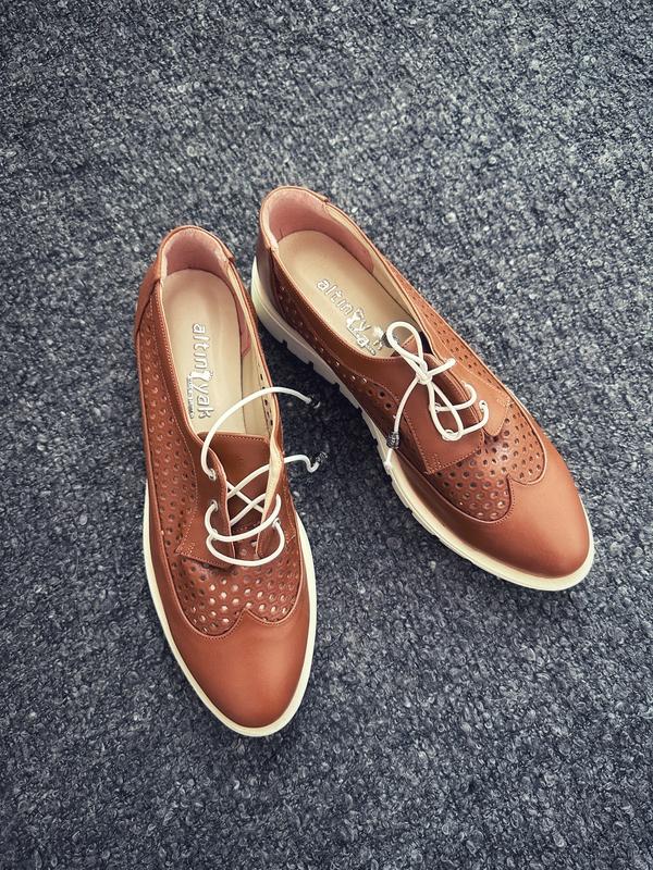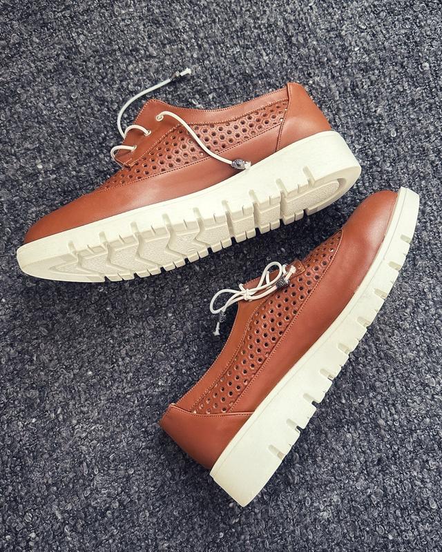 Женские весенне-летние туфли карамельного цвета с перфорацией. Мягкие и комфортные, из искусственной кожи. Пулиоритовая подошва - невысокая платформа. Новые!!!Размер - 40Производитель - Турция