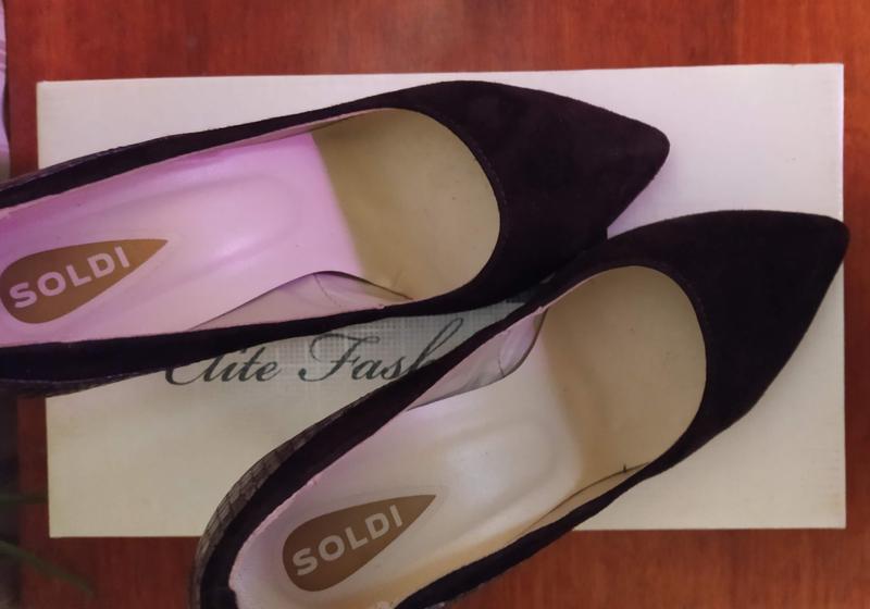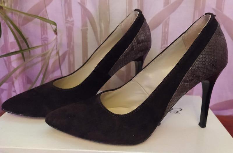 Продам туфлі Жанетт виробництва Soldi, Україна. Елегантна класика у кольорі гіркий шоколад + рептилія шоколад, натуральна замша і шкіра. Висота підборів 7,5 см, розмір 37 на ногу до 23,5 см. Зручна колодка. Стан нових, взувалися 1-2 рази.