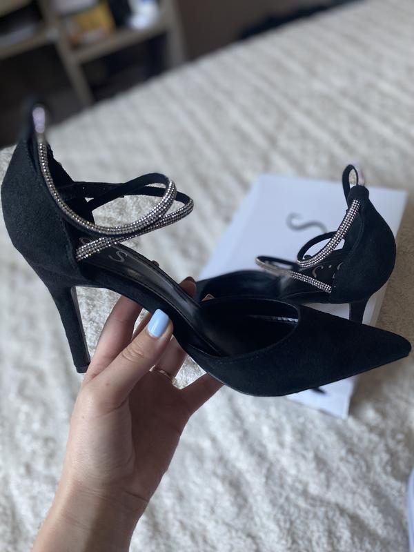 Выпускные туфли, праздничные туфли сатиновые черные с жемчугом