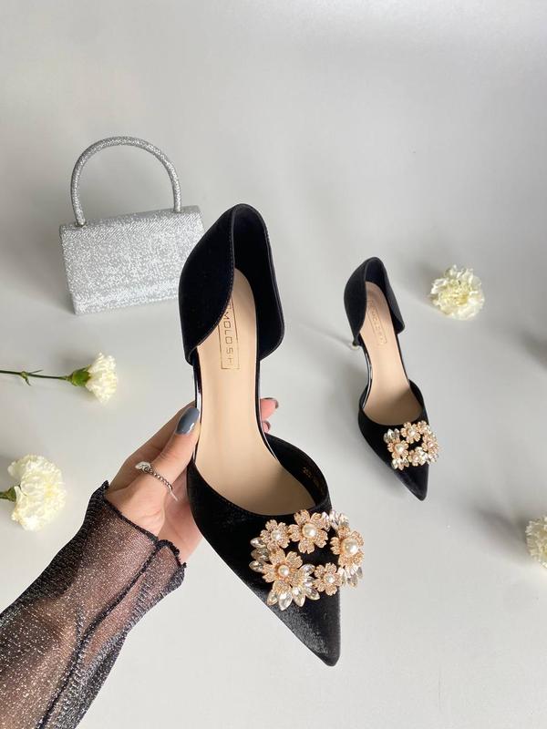 Черные атласные туфли с брошью на каблуке туфли с брошью черные туфли на каблуке атласные...