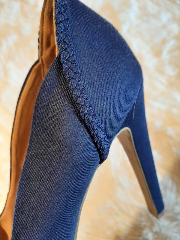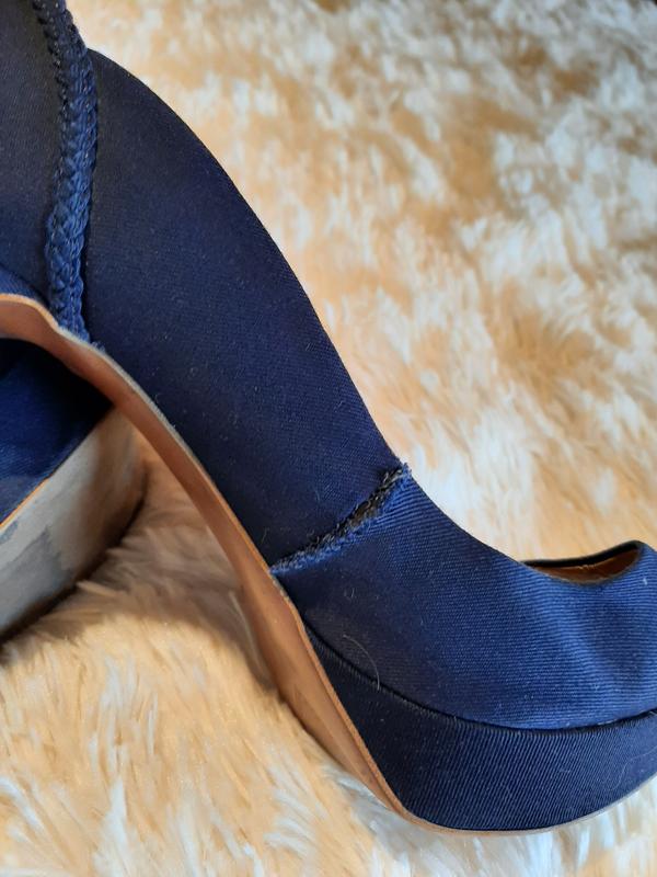 Очень красивые текстильные туфли, в идеальном состоянии, набойки целые, есть небольшой нюанс на внутренней стороне (на последнем фото показано)