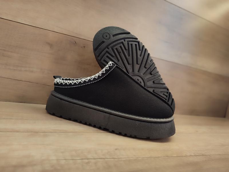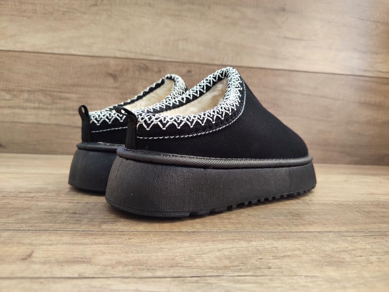 Черные угги сабо на меху автоледи тапки мокасины слипоны на высокой толстой подошве...