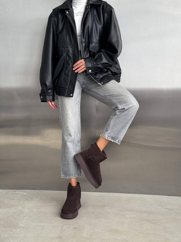 Угги, цвет: темный ШОКОЛАДНАТУРАЛЬНАЯ ЗАМШАвнутри: густое экомеховое высота от пятки - 13 смподошва: спереди 3,5 см/5 смПроизводство - КНР (без коробки)