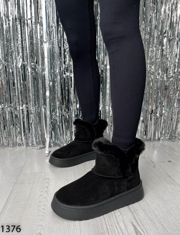 Трендовые женские угги Код 1376Цвет: черныйМатериал: НАТУРАЛЬНАЯ ЗАМШАВнутри: густое эко.мехВысота 11смПодошва: 3см-4смРазмер в размер 37-40Производитель Украина