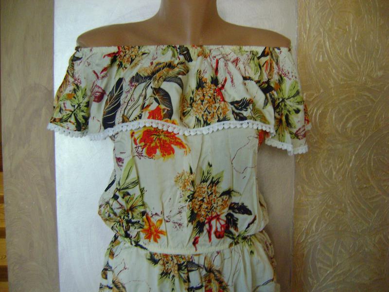 Бежевый (темные листья, малиновые цветы) - S\M (на манекене), L\XL.