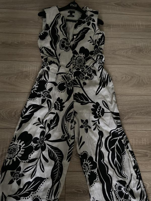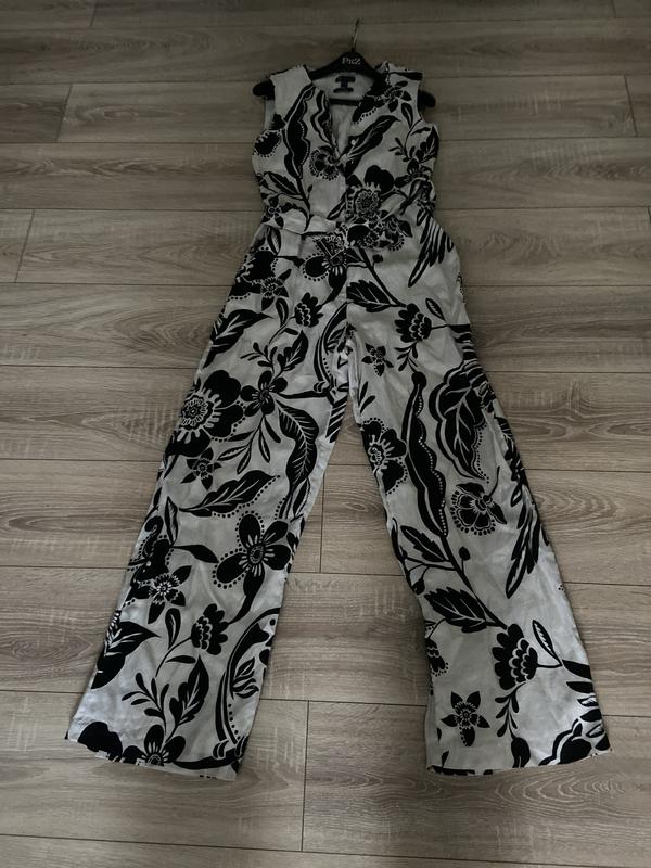 Комбінезон німецького бренду з цупкого льону, на віскозні підкладці в ідеальному новому стані, штани шорокі палацо, під широкий пояс, врізні кармани, просто шикарний , пог 46, пояс37, довжина до пояса 45, від пояса 105, ширина штанів 26, верх на ґудзиках , штани на замку ( без будь-яких нюансів)