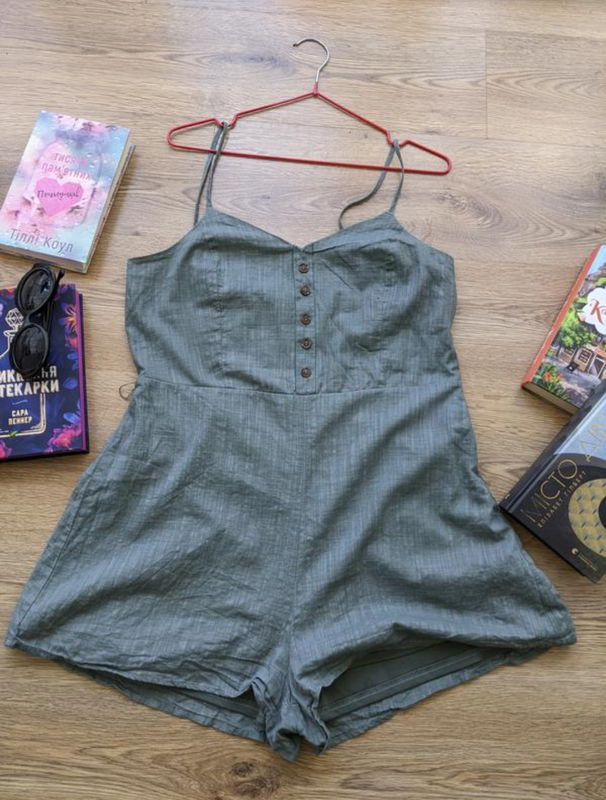 Супер комбинезон с шортами цвет хаки ромпер размер 44-46