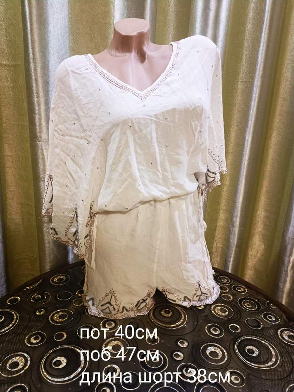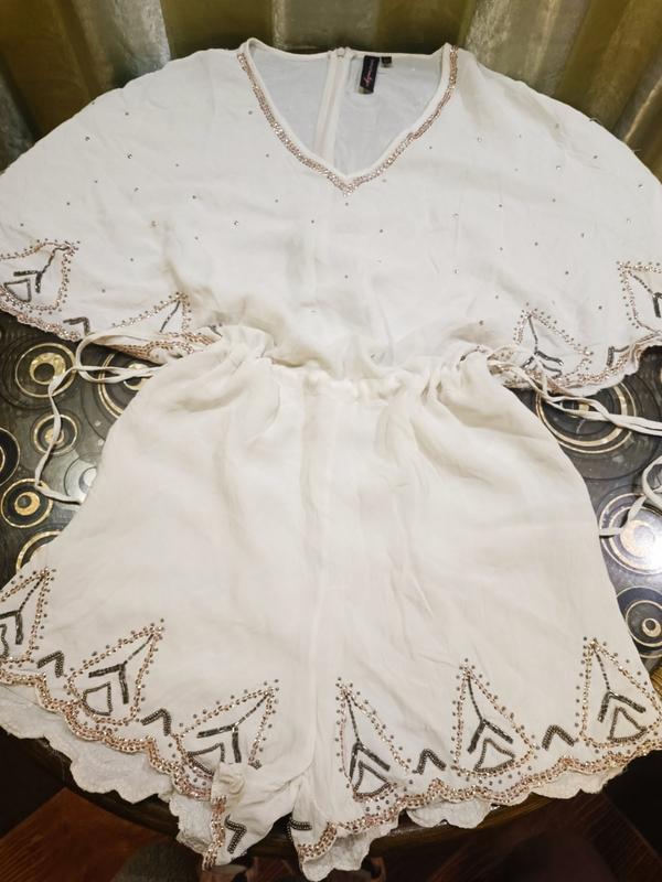 Красивый, нарядный летний комбинезон с шортами. Расшит золотом и камнями.