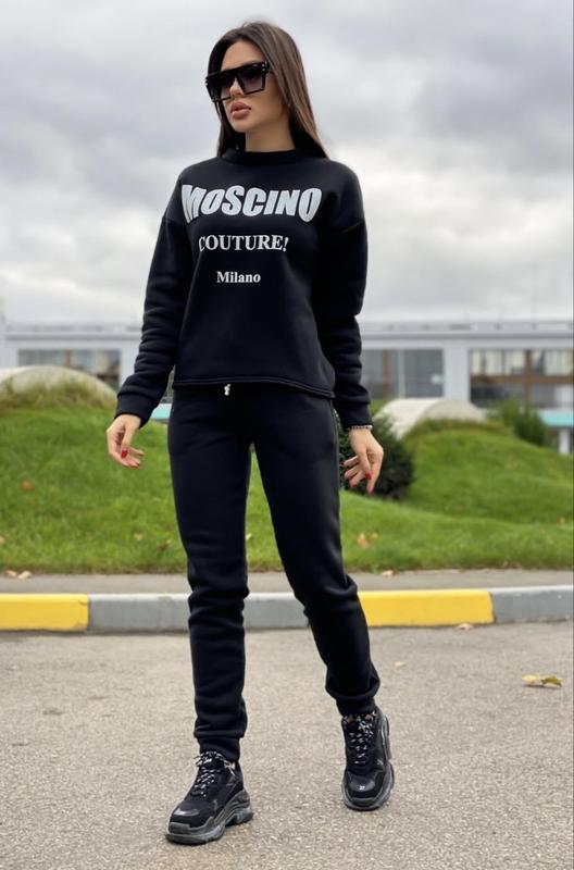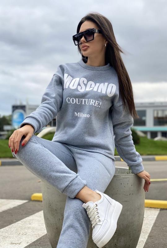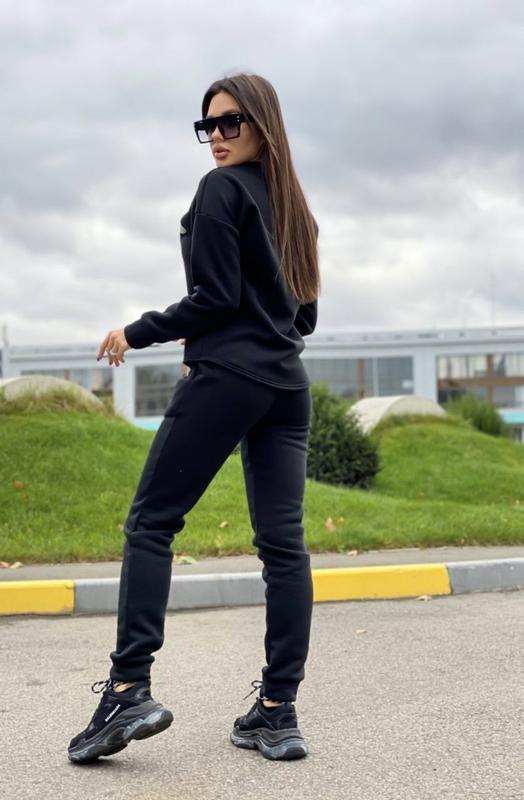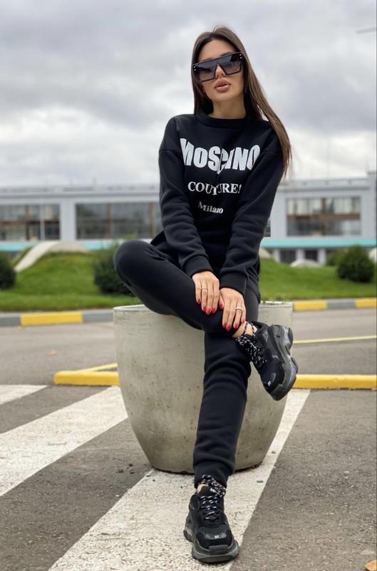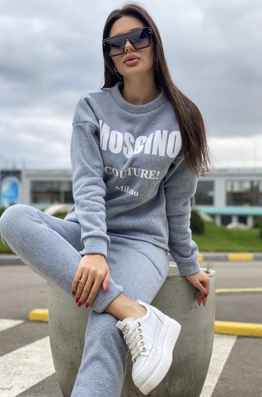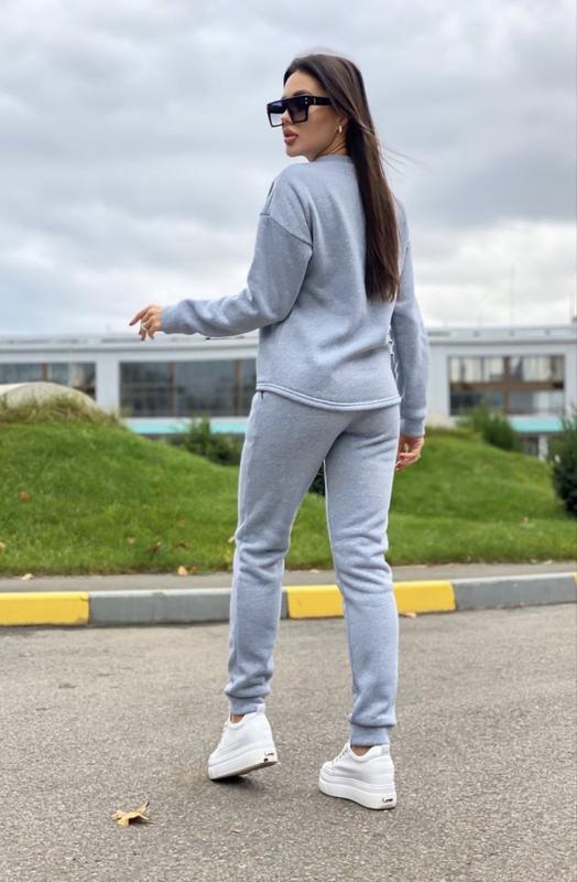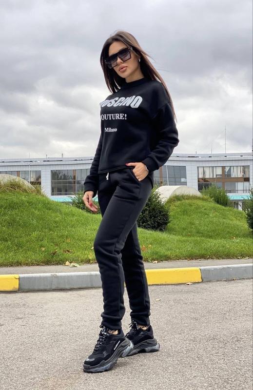 Женский костюм Трехнитка на флисе 42-52 теплый осенний спортивный костюм серый и черный