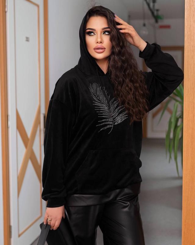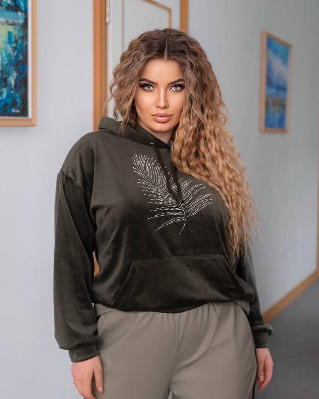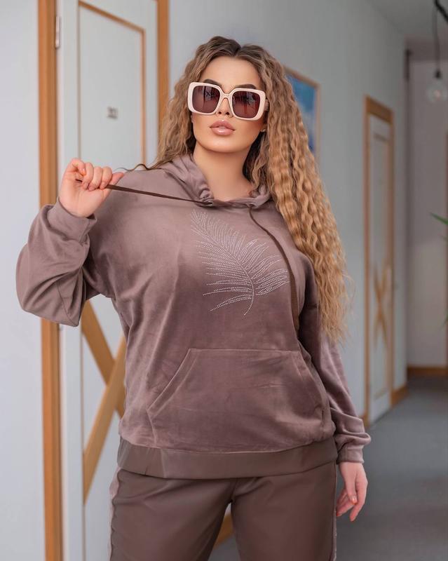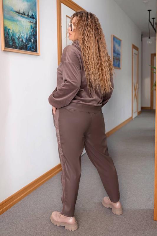 Брюки пояс на резинке, выполненный из велюра, ломпас с камнями, удобные карманы