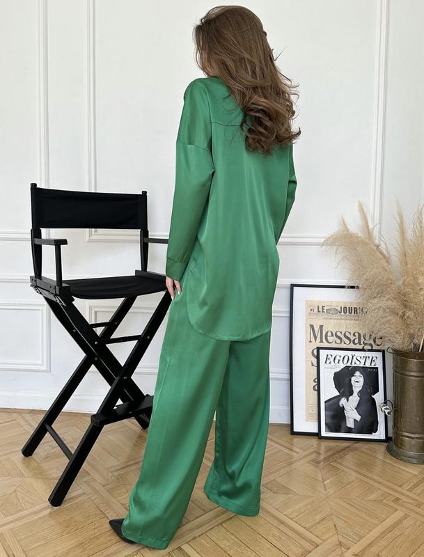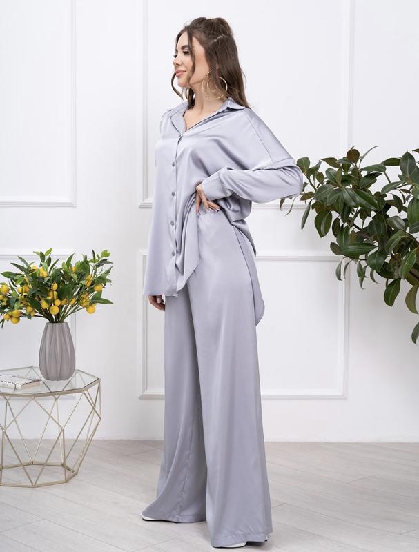 Штани на гумці з прямим широким кроєм та високою посадкою на талії.