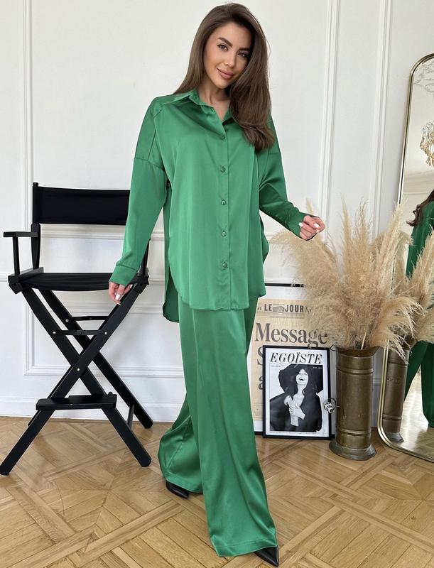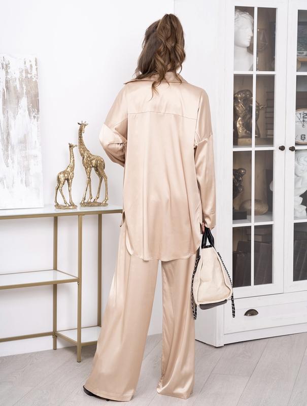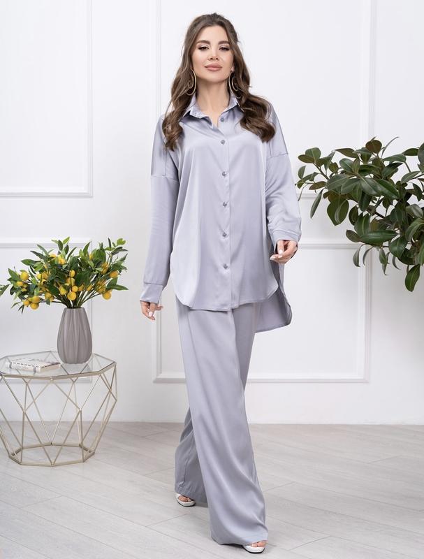 Асиметрична подовжена сорочка на ґудзиках із довгими рукавами на манжетах та коміром.