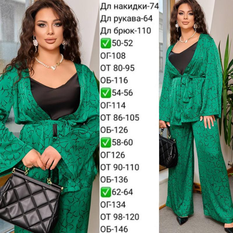 Костюм свободного кроя, штаны на резинке, пояс в комплекте.