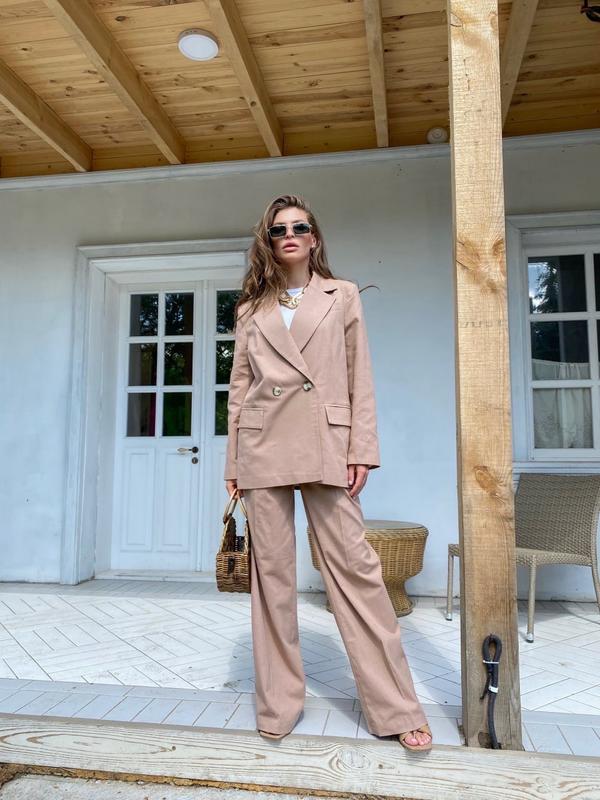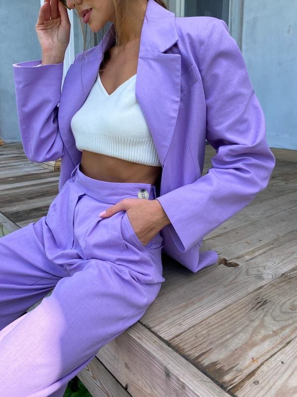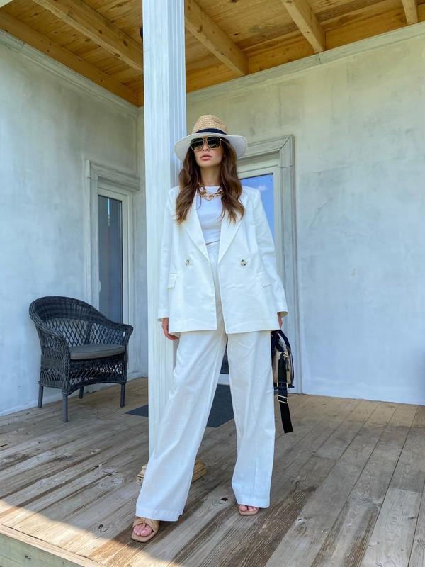 Брючный летний костюм, выполненный из льна! Трендовый пиджак «с мужского плеча», с карманами, хлопковая подкладка, шлица по спинке. Пиджак имеет форму!