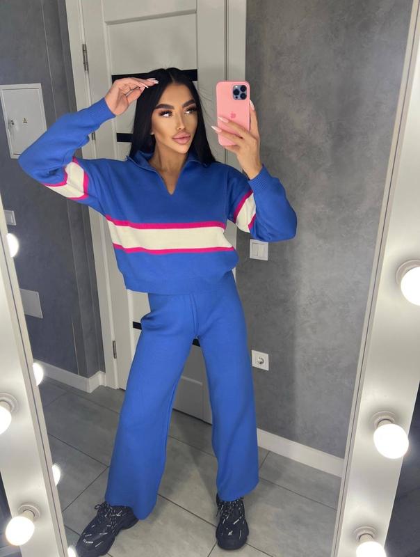 Костюм свитер кофта на молнии в полоску + штаны прямого кроя трубы турция🇹🇷