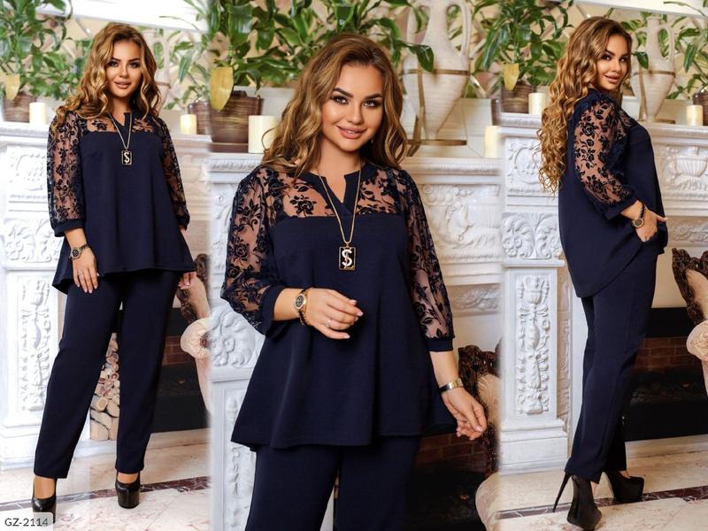 Нарядный женский комплект смотрится элегантно, благодаря лаконичному крою и ненавязчивому декору. Блуза полуприлегающего силуэта, от линии талии до низа Расширенная, из приятной на ощупь и достаточно эластичной ткани. В этом наряде вы непременно соберете восхищенные взгляды и будете звездой на любом торжестве.
