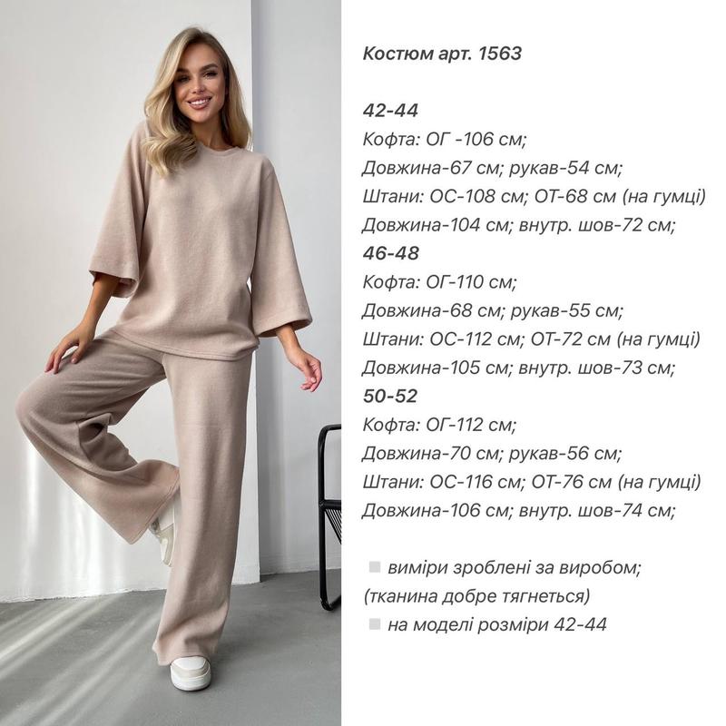 Костюм арт. 1563 annЦена: 890 грн.Размеры 42-44; 46-48; 50-52;Материал: ангора рубчик (очень мягкая и теплая)Цвета: бежевый, серый, голубой, черный.