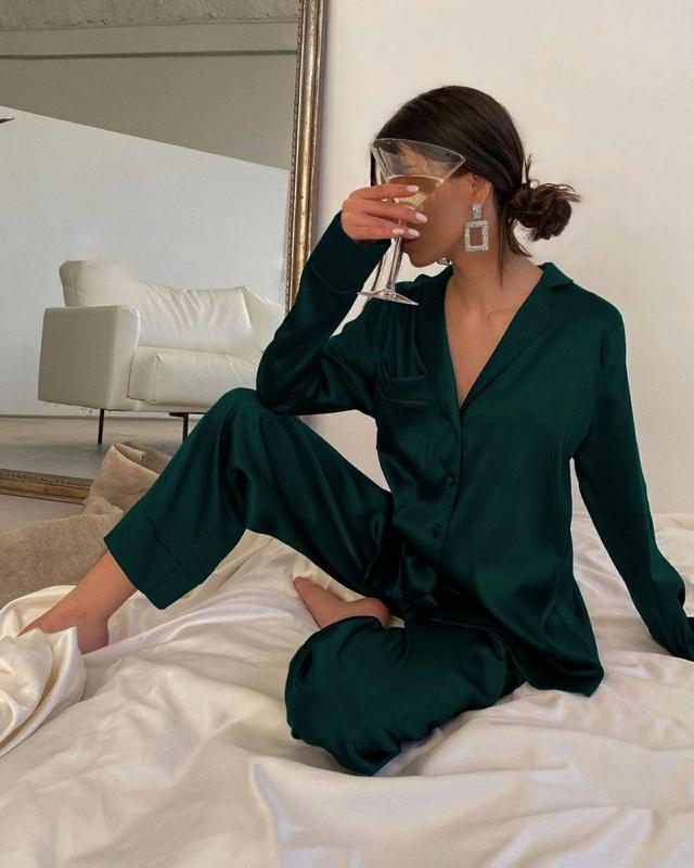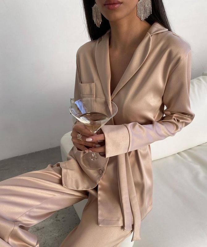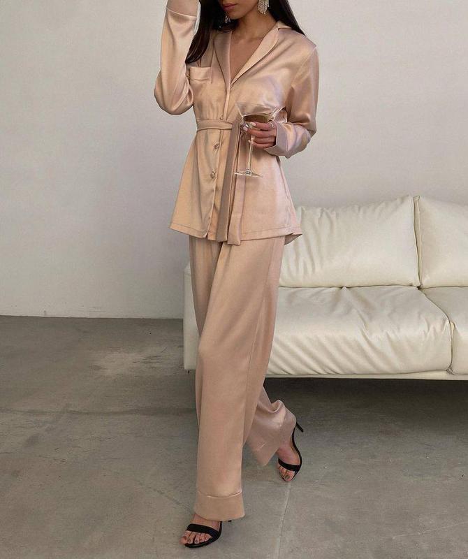 Додали новий колір 🔥🔥🔥Костюм в піжамному стилі 🪡Тканина: шовк Армані📏Розмір: 42-44, 46-48🎨Колір: беж, смарагд 💸Ціна - 750 грнПояс в комплекті ✨