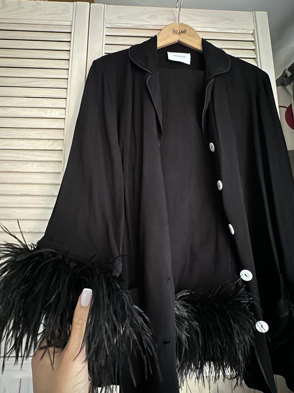 вискоза, натуральные перья, отстегивается, поэтому можно стирать в стиральной машинке. Купили в ЦУМе