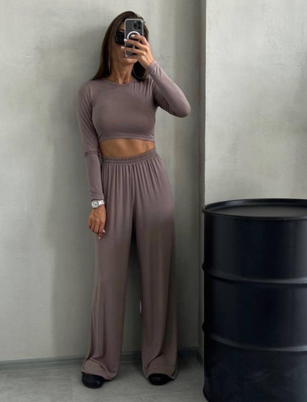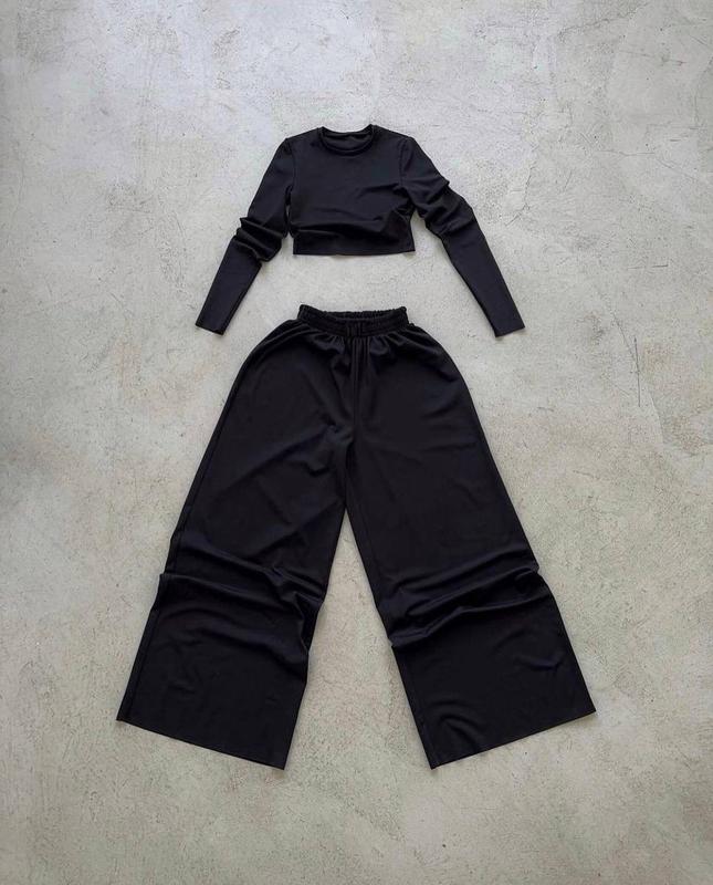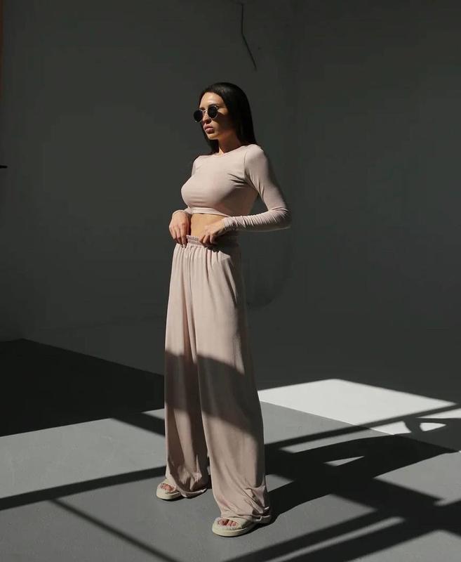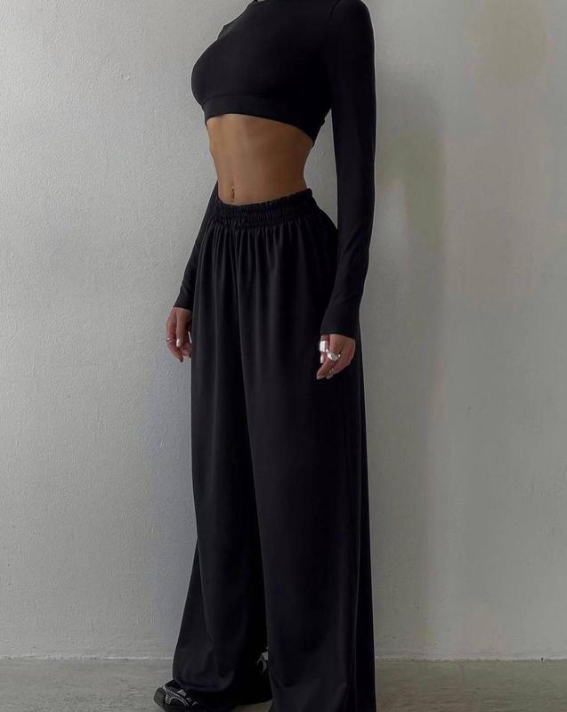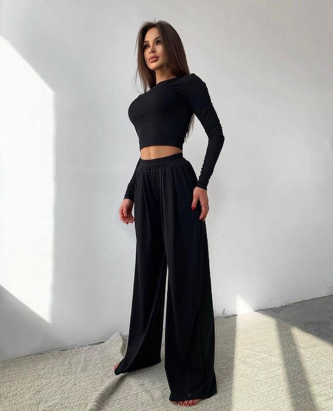 Вкорочений кроп топ. Штаны палаццо свободного кроя, высокая посадка, есть карманы👍