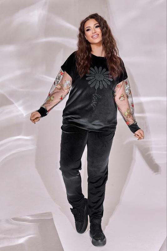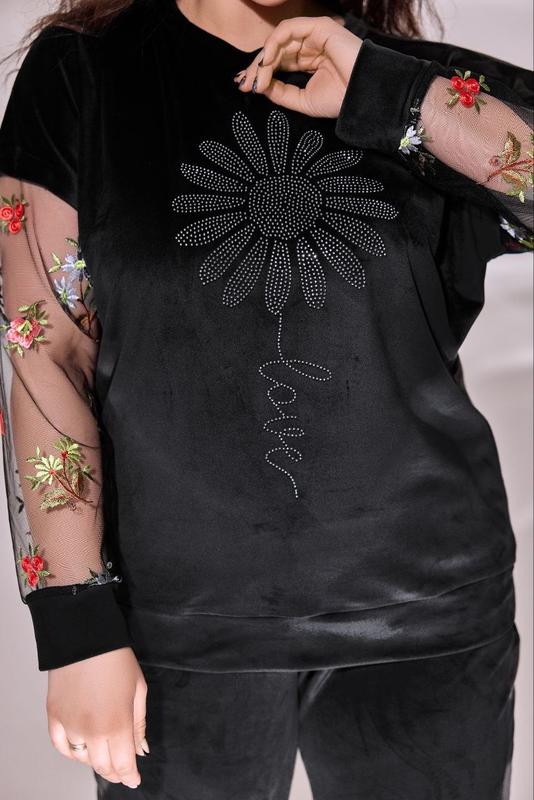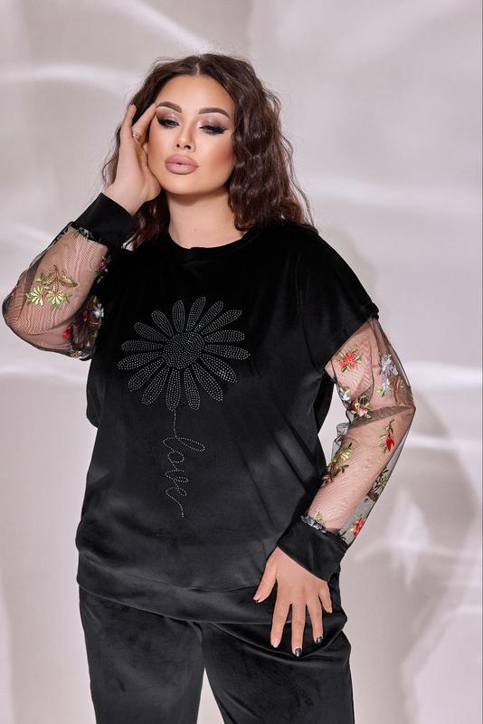Велюр + сетка с вышивкой + стразы.