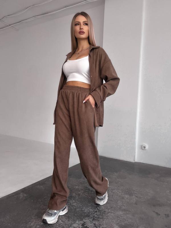 💛9 кольров 💙вельвет микро брючный костюм: рубашка на пуговицах, рукава на манжете, штаны...