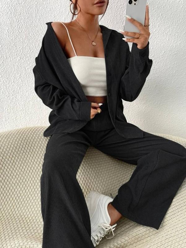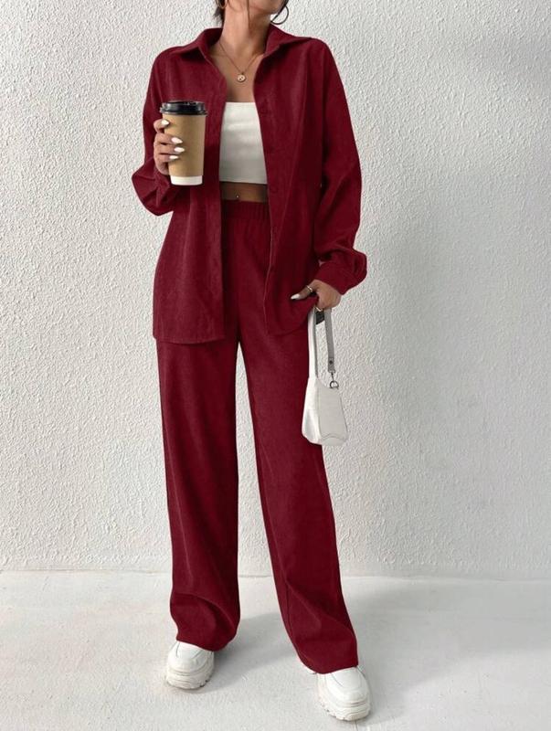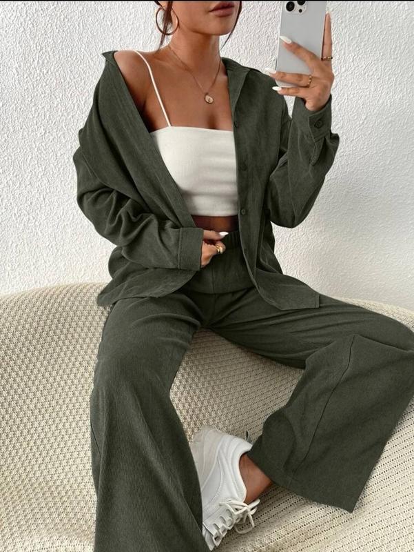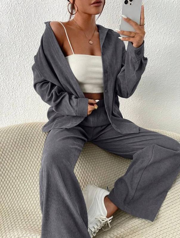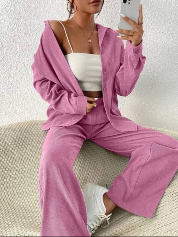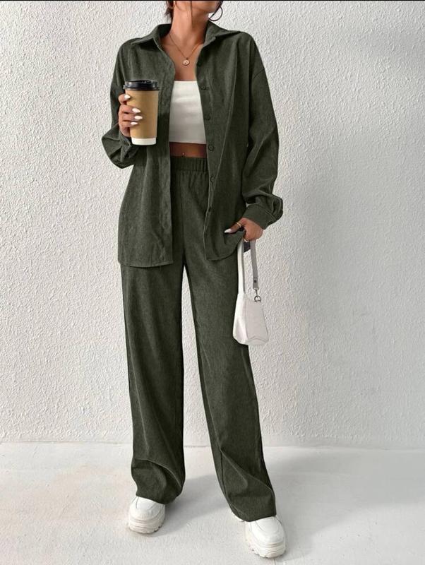 Трендовые широкие брюки с кармашками и рубашка на пуговицах (окрашенные в цвет костюма)