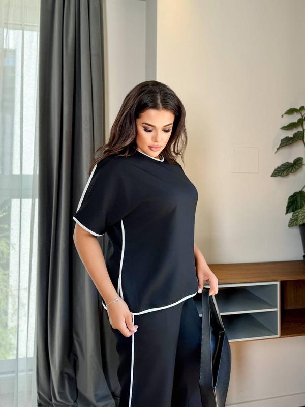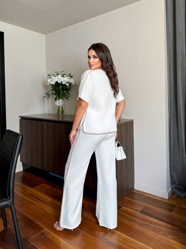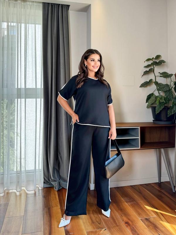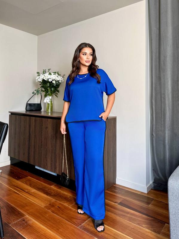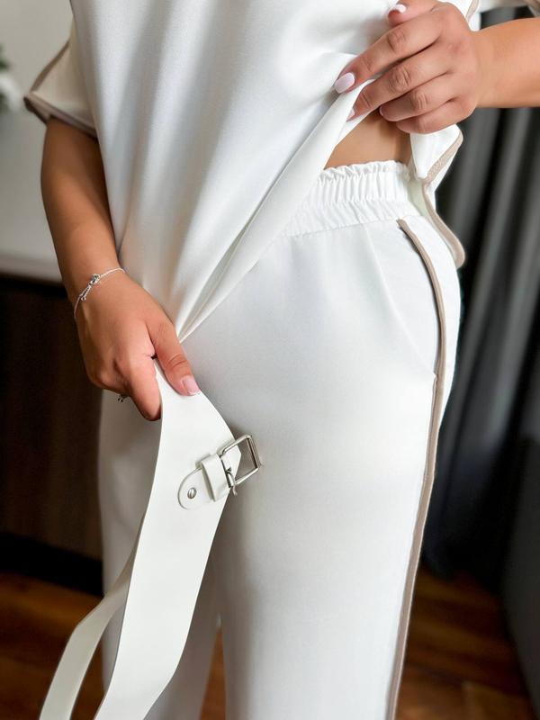 Ткань: киви. Легкая костюмная ткань, с высоким содержанием коттона. В брюках талия на резинке. Ремень не входит в комплект.