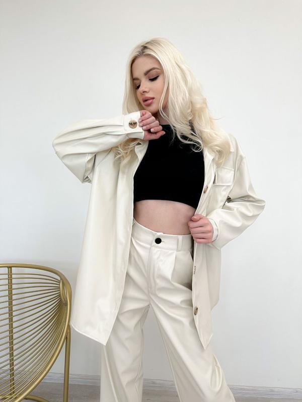 Супер Ціна‼️‼️‼️Розпродаж ✅✅✅Сорочка + штани.Тканина еко-шкіраРозмір 42-44Колір крем, чорний✅️✅️Костюм 650 грн ‼️‼️‼️‼️Модель 02330394 штаниМодель 02330396 сорочка