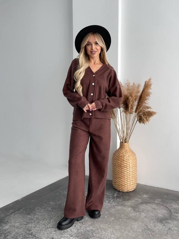 Элегантный женский ангоровый костюм – отличное решение для создания уютного и стильного образа на каждый день. Этот комплект сочетает в себе как красоту, так и удобство, что делает его идеальным выбором для прогулок, встреч с друзьями или для домашнего отдыха