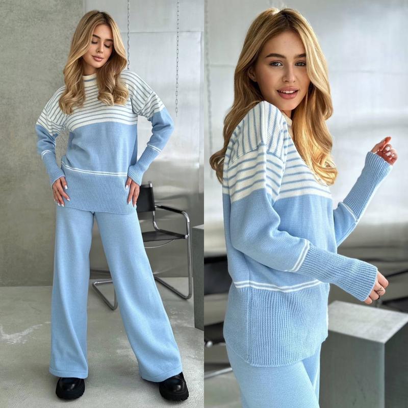 Женский костюм двойка свитер в полоску и брюки вязаный шерсть акрил