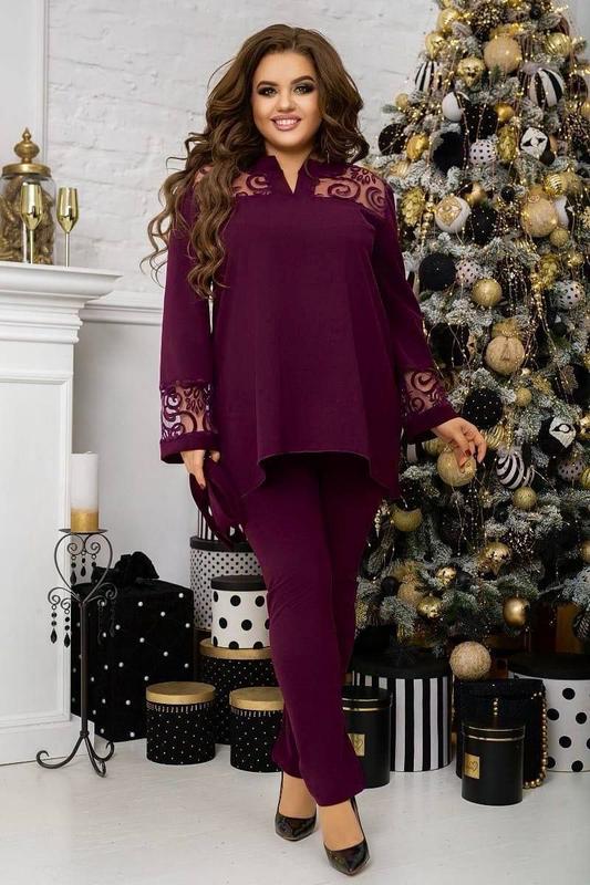 Туника выполнена из качественной ткани со ставкой из флока. Модель свободного кроя с удлиненной спинкой. Рукав также декорирован флоком на сетке. Пояс у комплекті.