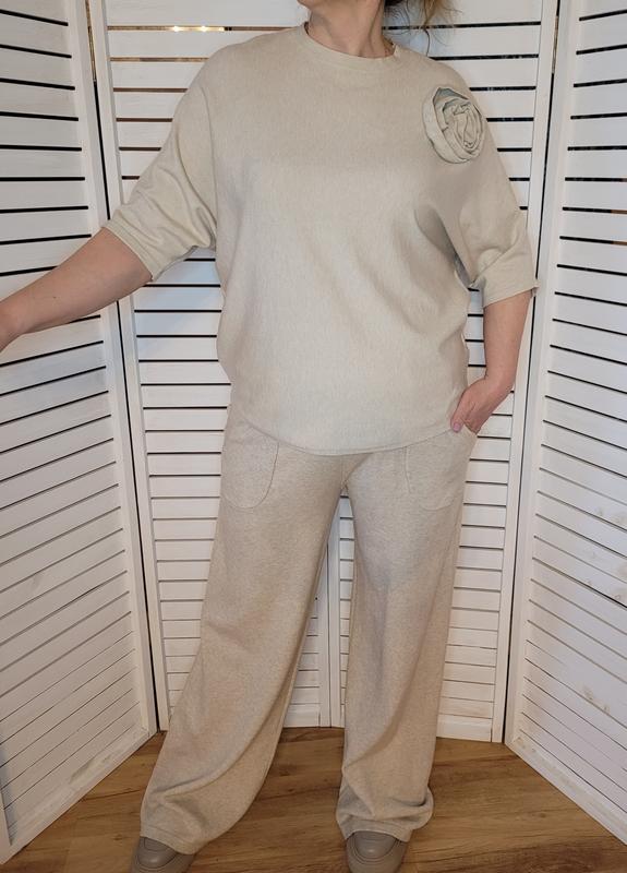 Абсолютно шикарный костюм в бежевом-кремовом цвете❤️ И на каждый день и на праздничный случай❤️ Качество супер👌 Крутая итальянская фабрика AcquaLimone ❤️ Мягкий, очень приятный к телу, достаточно плотная вязка👌 Размер универсальный от м до хл👌 Обратите внимание на длину брюк - подойдёт на высоких девушек 👌 Замеры: Кофта рукав от горловины 50, пог 60, поб 55, длина 70 Брюки длина 116, пот 36-55, поб 58+, посадка 34/38, ширина штанины 30/32 Смотрите все мои объявления!Найдёте много интересных вещей по приятным ценам ❤️