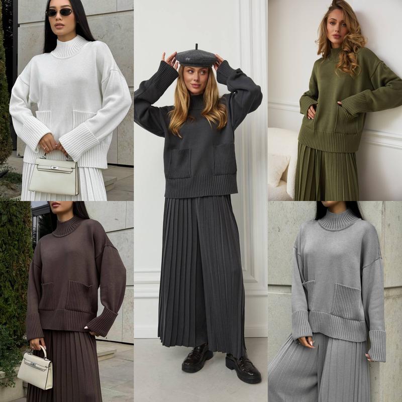 Костюм "Клава " Размер : XS-S, M-L, XL-XXL Состав : хлопок 90%, меринос 10% Свитер : длина по спинке 58 см Укороченные брюки кюлоты длина 95 см