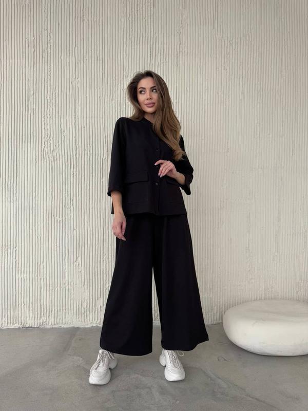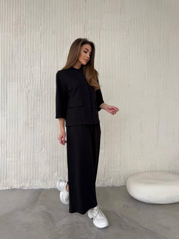 ⚜️мод.583 ⚜️тканина: креп-трикотаж 🔥 ⚜️размер. универсал ⚜️цвет. черный, шоколад Замеры.Груди 112рукав с плечом 54длина 62талия 60-84стегна 130длина 105