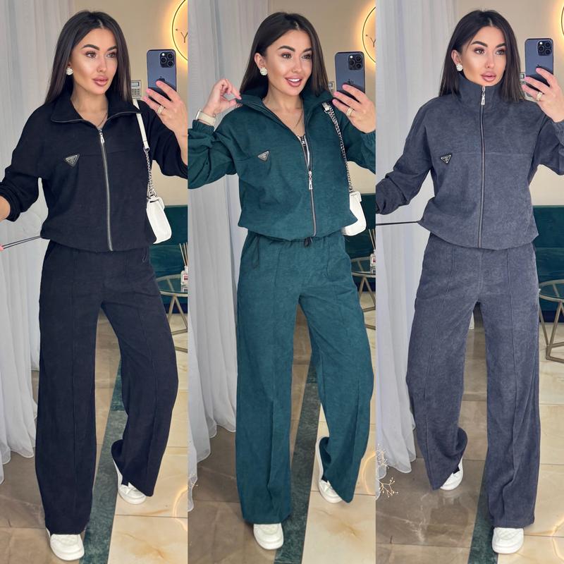 Костюм Мод 216 Розміри 42-44 46-48 50-52 Матеріал мікровельвет дуже гарної якості 👍 Кольори: Графіт, електрик, хакі , бургунді, чорний, смарагд 🔥Твій ідеальний костюм на весну Штани палаццо з карманами, кофта на блискавці, рукав на резинці, низ кофти на фіксаторі. VOR