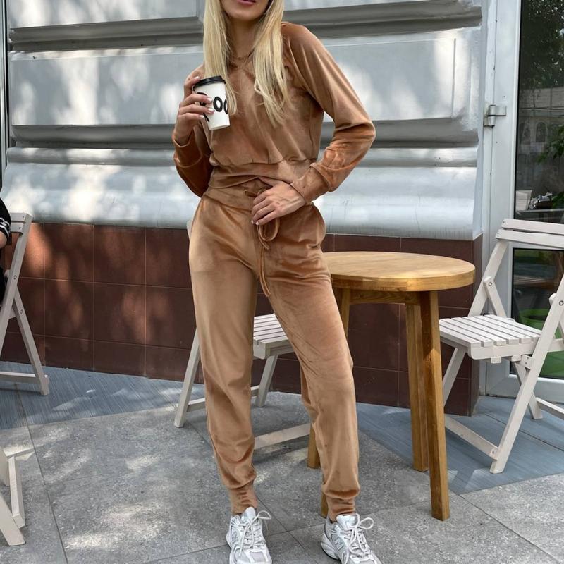 Распродажа 🏷 плюшевый велюровый прогулочный костюм укороченный худи и штаны треники на вы...