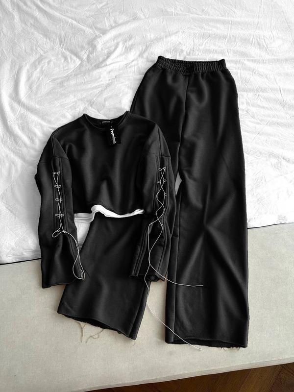 Жіночий чорний костюм двійка базовий вільного крою кофтинка і брюки палаццо 42-48