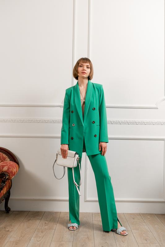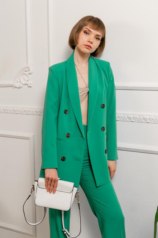 Можливі кольори: Чорний / Білий / Коричневий / Оливка / Бежевий / Блакитний / Синій / М ятний / Смарагд. Піджак повністю на підкладці. Склад тканини: 75% віскоза, 25% поліестер.
