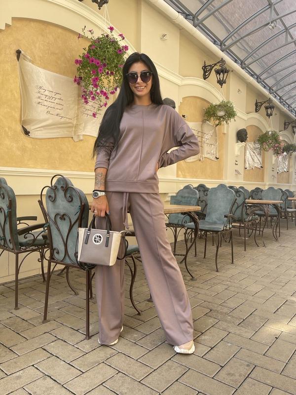 Костюм на кожен день.Штани палаццо. Ткань джерси. Состав вискоза, шовк, хлопок. Размеры 42-44, 46-48,50-52. В размере 42-44, кофта длина по спинке 60 см, перед 54 см, рукав от горла 70 см, пог 52 см, побеги 50 см. Брюки длина 104 см,рот 34 см, побеги 50 см, посадка по спинке 38 см, ширина штанины внизу 30 см В размере 46-48 Кофта пог 54 см, побеги 52 см. Брюки длина 105 см побеги 52 см, пот35 см, ширина штанины 31 см В размере 50-52 Кофта пог 56 см, длина рукава от горла 72 см. Брюки длина 106 см, побеги 58 см, посадка по заднему шву 40 см, ширина штанины внизу 32 см. В размерет54-56 кофта длина перед 58 см, спинка 64 см,рукав от горла 72 см, пог 64 см, брюки длина 108 см, побеги 60-62 см Отшивает окраску при наличии ткани. Производитель харковское швейное предприятие, оплата на карту приват, наложенный с предоплатой 150 грн, отправка новой или укрпочтой Размер 42-44 ог 86-96, ос 90-100 Размер 46-48 ог 98-106, ос 100- 108 Размер 50-52 ог 106-114, ос 110-118, Размер 54-56 ог 114-120, ос 120-132