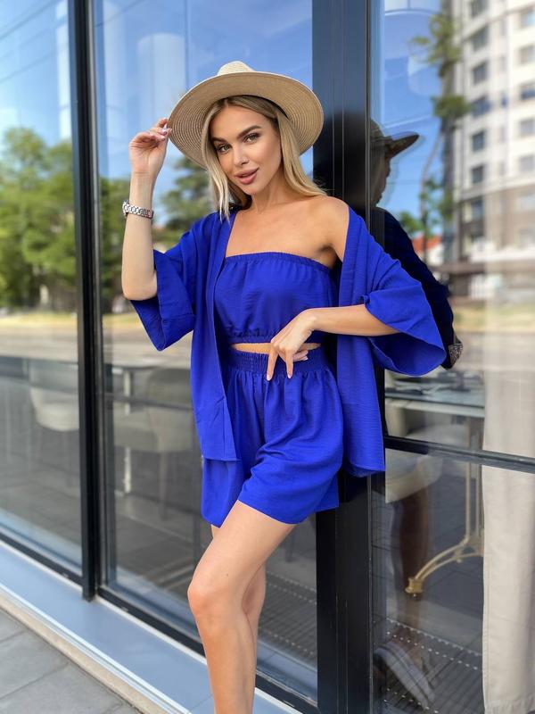 Распродажа летний костюм 3 в 1 тройка кимоно шорты топ