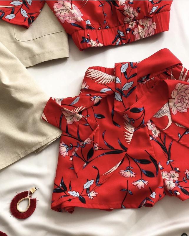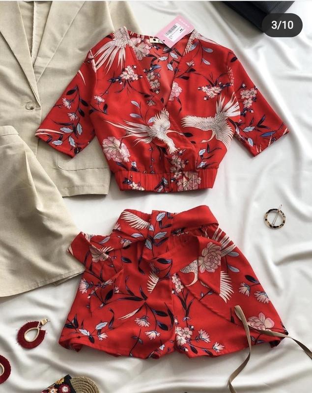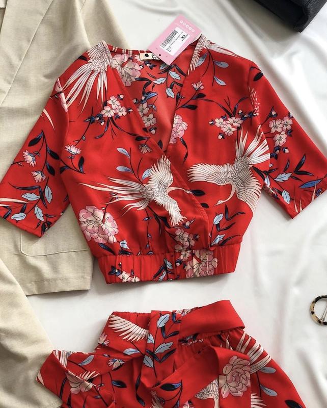 Летний костюм с принтом журавль, бренда missyempire, супер качества, новый с бирками, размер xs/s с официального сайта