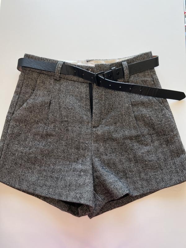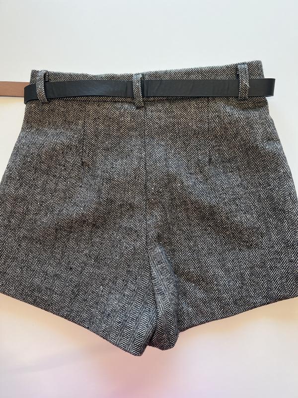 Твидовые шорты с ремешком в идеальном состоянии. Качественный пошив подклада, приятная ткань подойдет к любому луку на все случаи жизни. Красиво сидят на фигуре и подчеркивают талию. Размер S,Xs