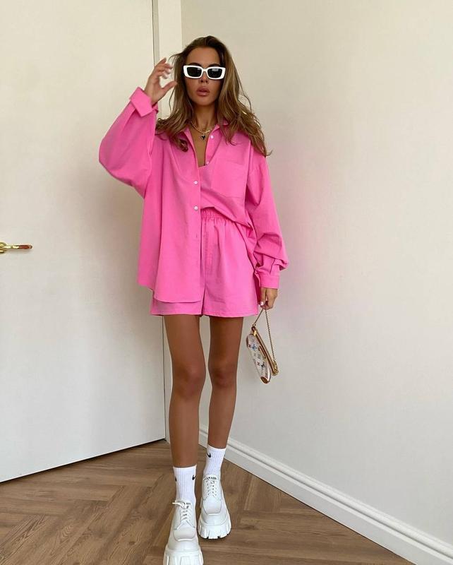 Костюм двойка (рубашка в стиле oversize+шорты на резинке)