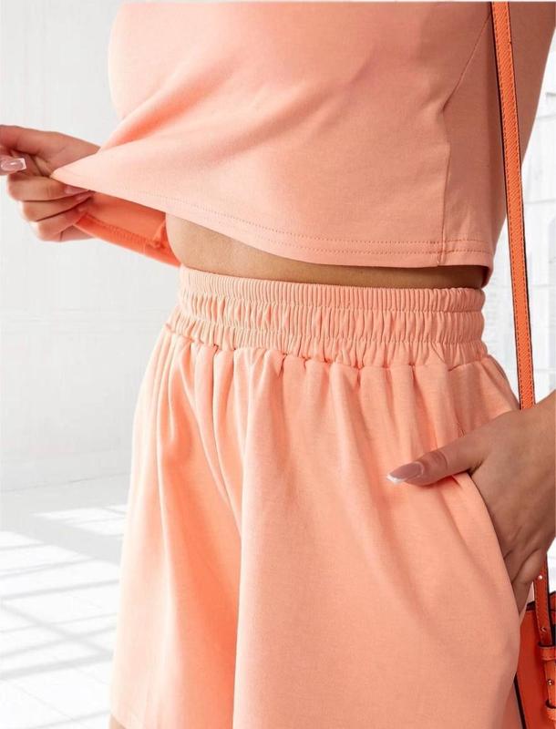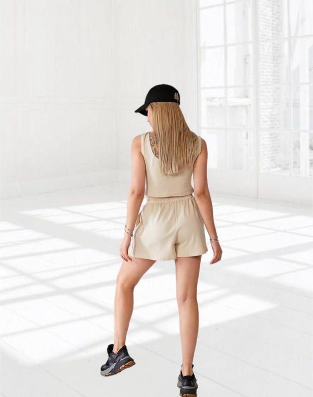 Летний костюм двойка, топ с вшитыми чашками, шорты высокая посадка, с карманами какие-то 👍 фабричный Китай